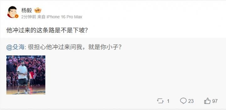 殳海的老板杨毅评论道:“他冲过来的这条路是不是下坡?”